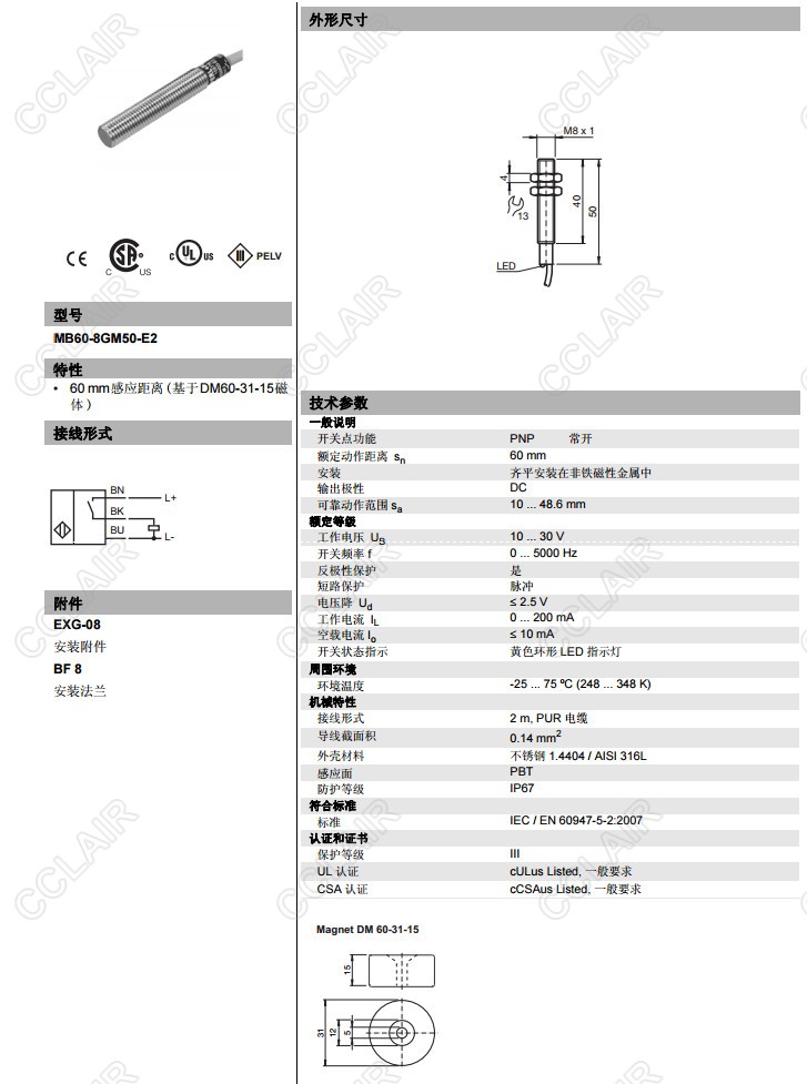MB60-8GM50-E2,磁式接近開關(guān)