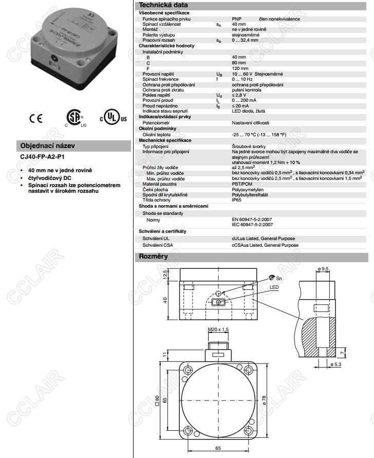 CJ40-FP-A2-P1,電容式接近開關(guān)