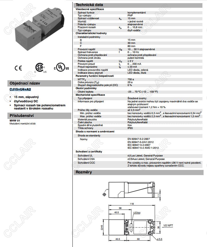 CJ15+U4+A2,電容式接近開關