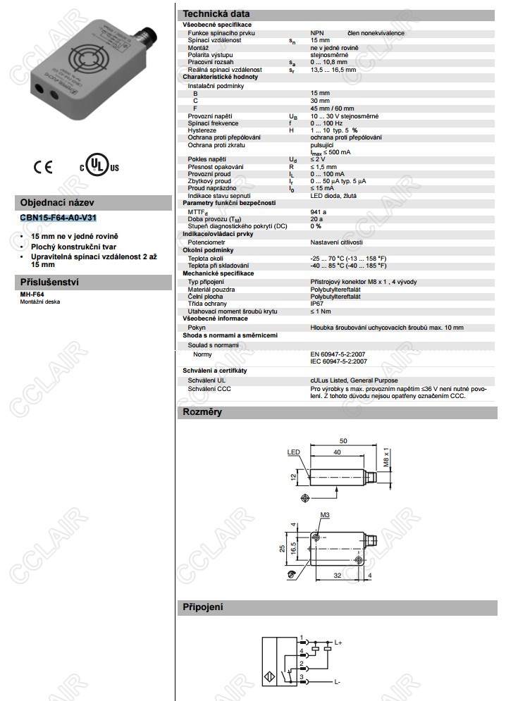 CBN15-F64-A0-V31,電容式接近開關