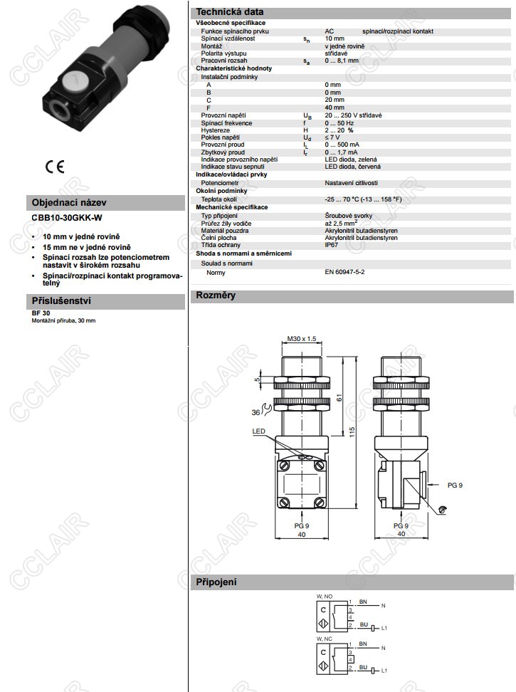 CBB10-30GKK-W,電容式接近開關(guān)
