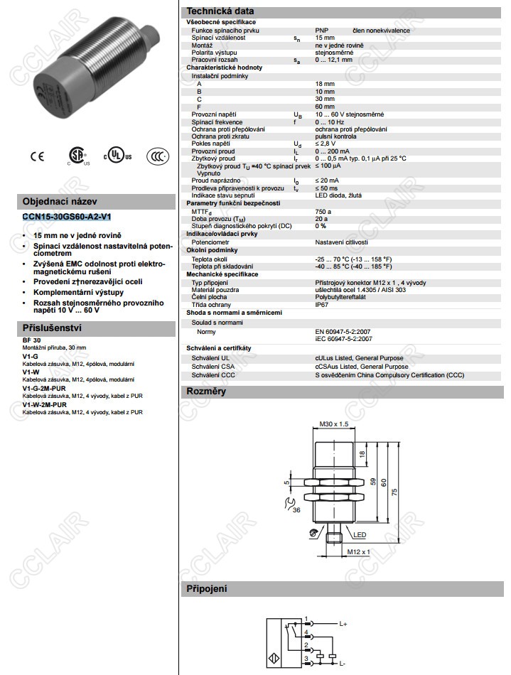 CCN15-30GS60-A2-V1,電容式接近開關(guān)