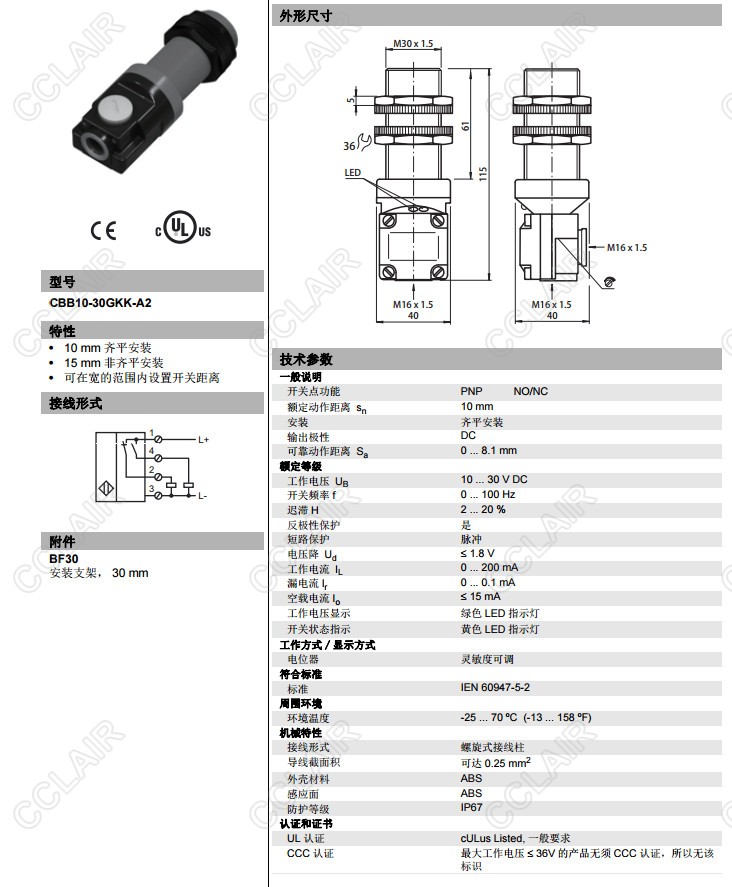 CBB10-30GKK-A2,電容式接近開(kāi)關(guān)