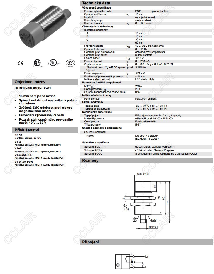CCN15-30GS60-E2-V1,電容式接近開關(guān)