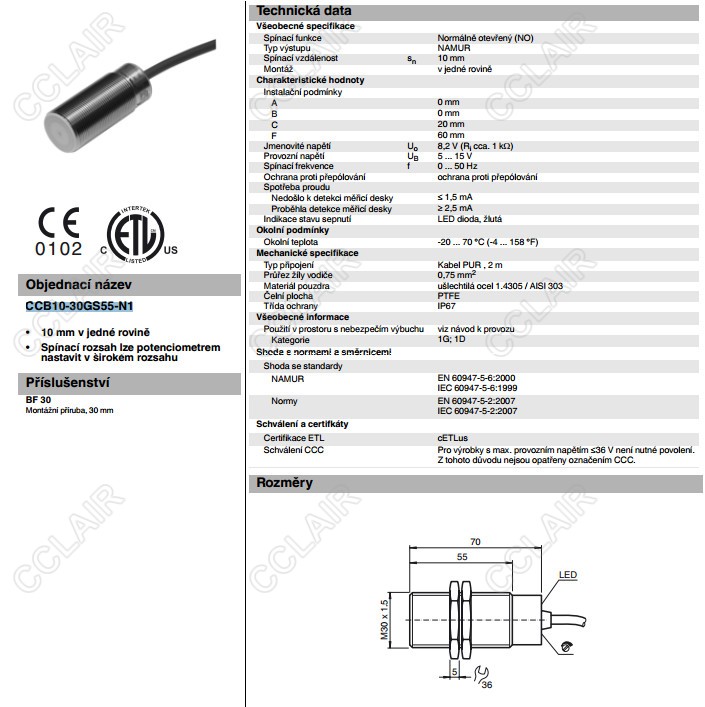 CCB10-30GS55-N1,電容式接近開關(guān)