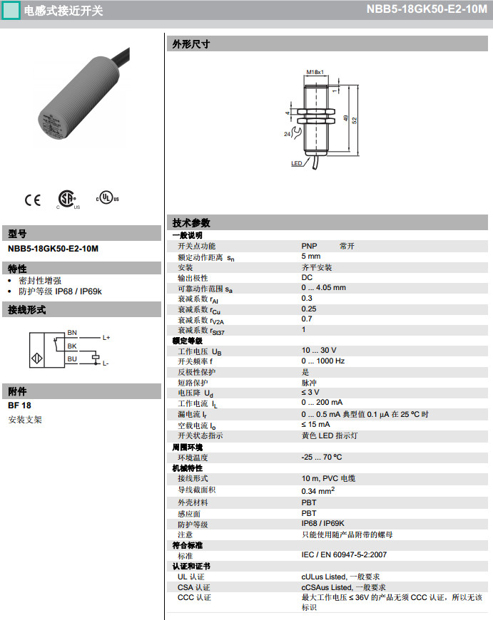 NBB5-18GK50-E2-10M,NBB5-18GK50-E2-15M感應式傳感器