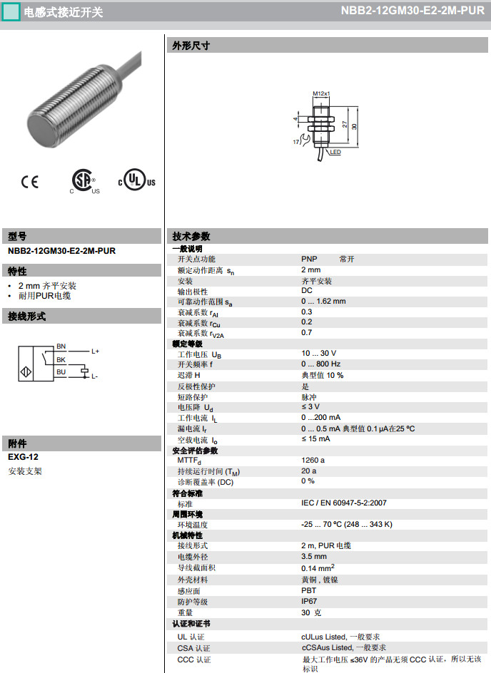 NBB2-12GM30-E2,NBB2-12GM30-E2-2M-PUR感應(yīng)式傳感器
