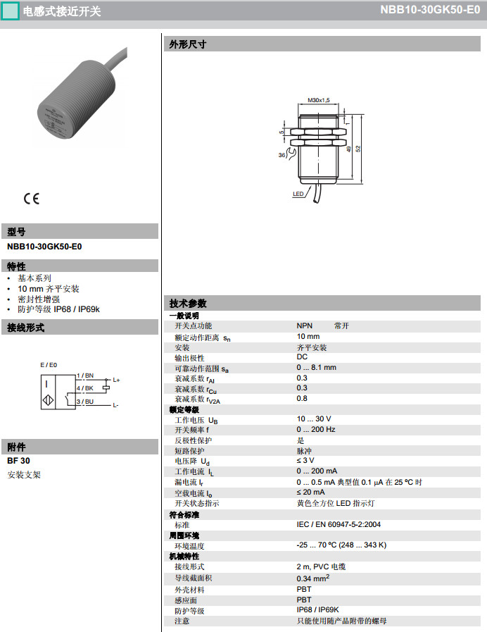 NBB10-30GK50-E0,NBB10-30GK50-E2,NBB10-30GK50-E2-10M感應(yīng)式傳感器