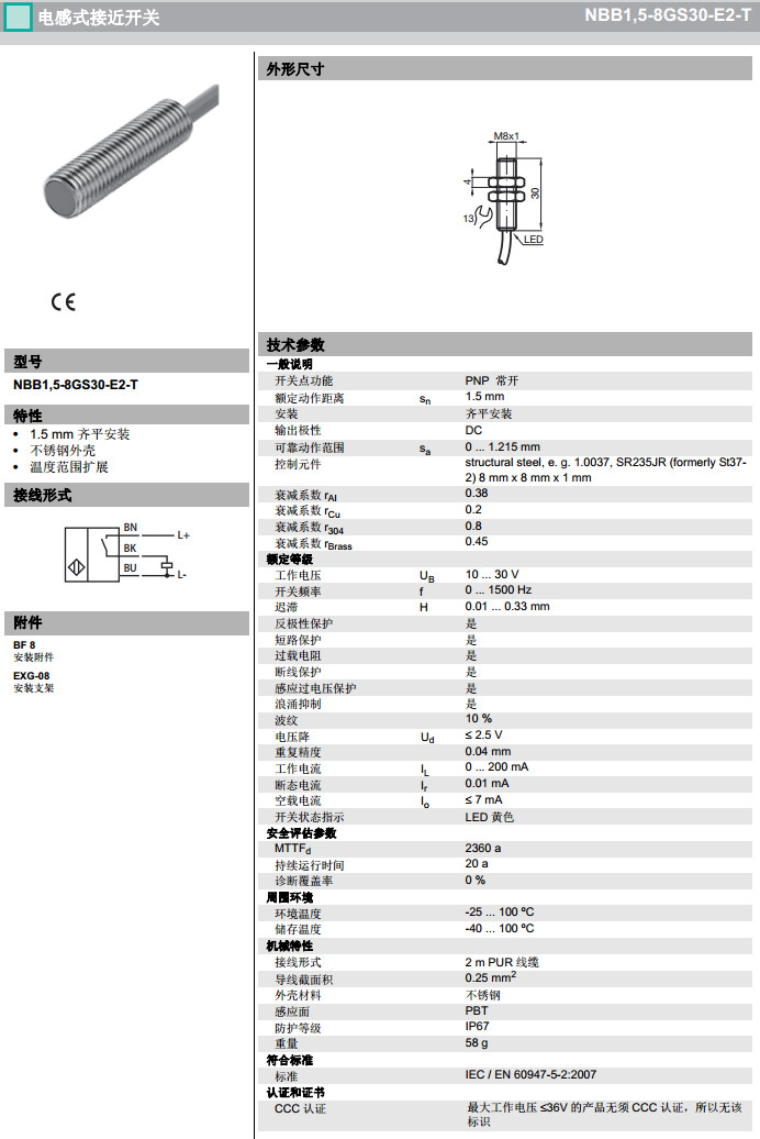 NBB1,5-8GS30-E2-T感應(yīng)式傳感器