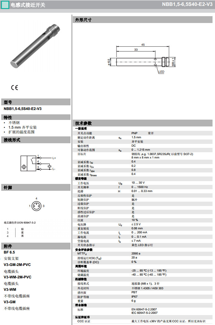 NBB1,5-6,5S40-E2-V3感應(yīng)式傳感器