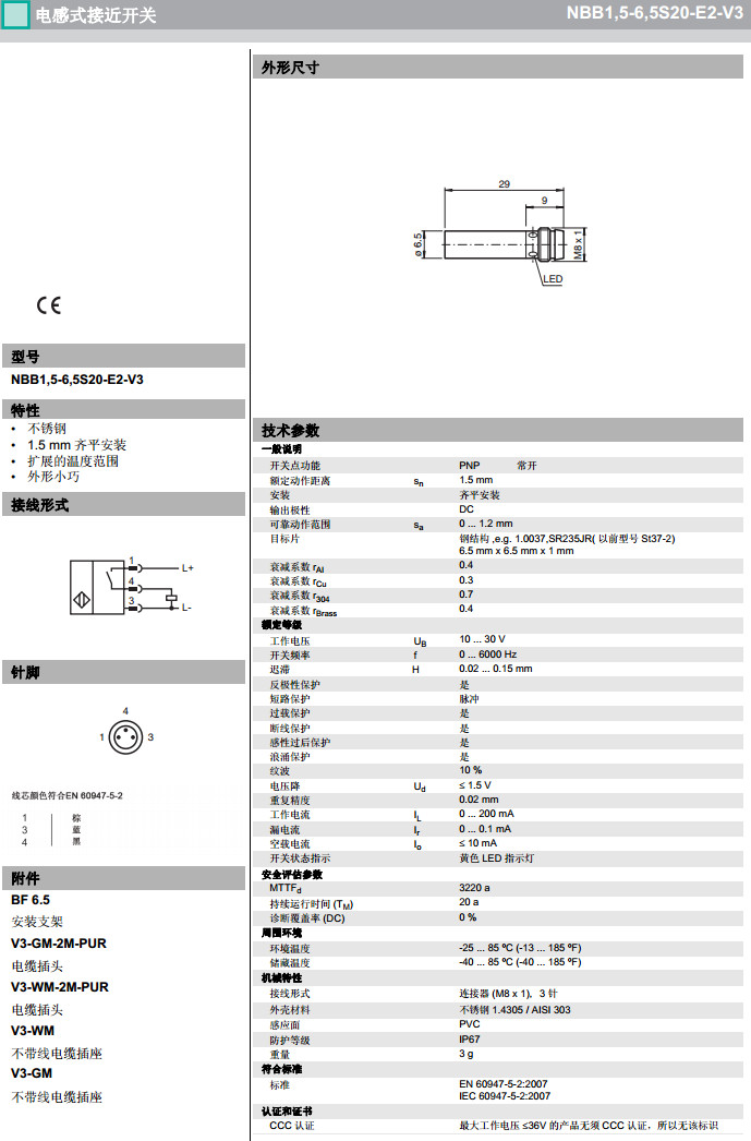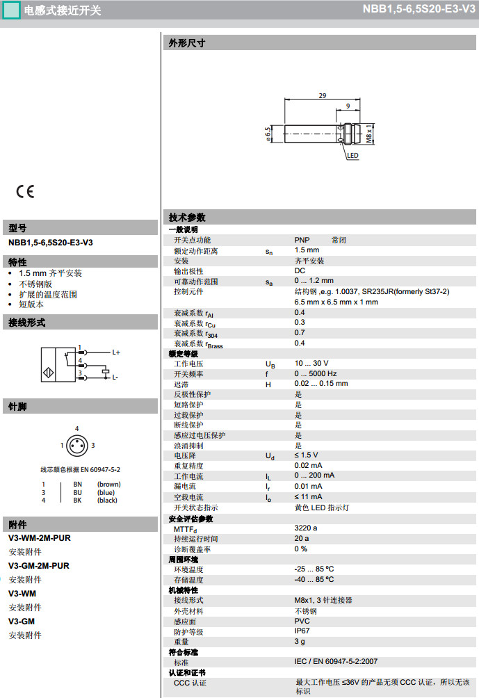 NBB1,5-6,5S20-E2-V3,NBB1,5-6,5S20-E3-V3感應(yīng)式傳感器