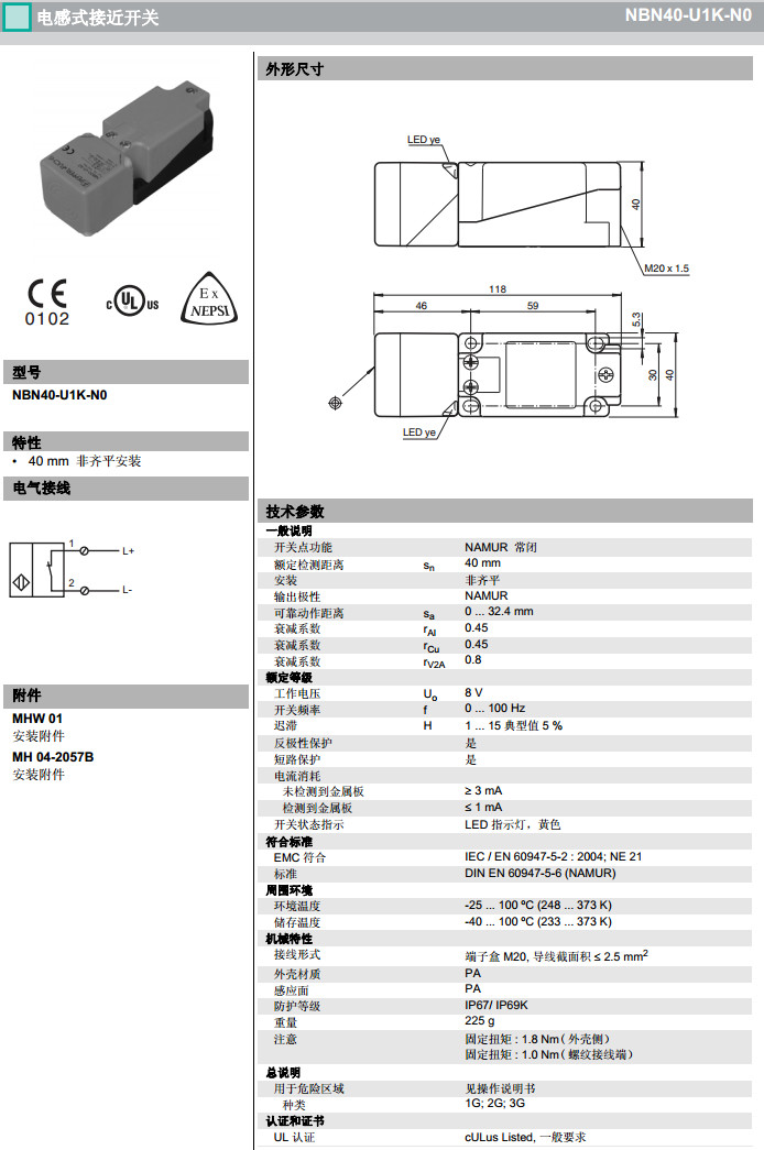 NBN40-U1K-N0電感式接近開(kāi)關(guān)