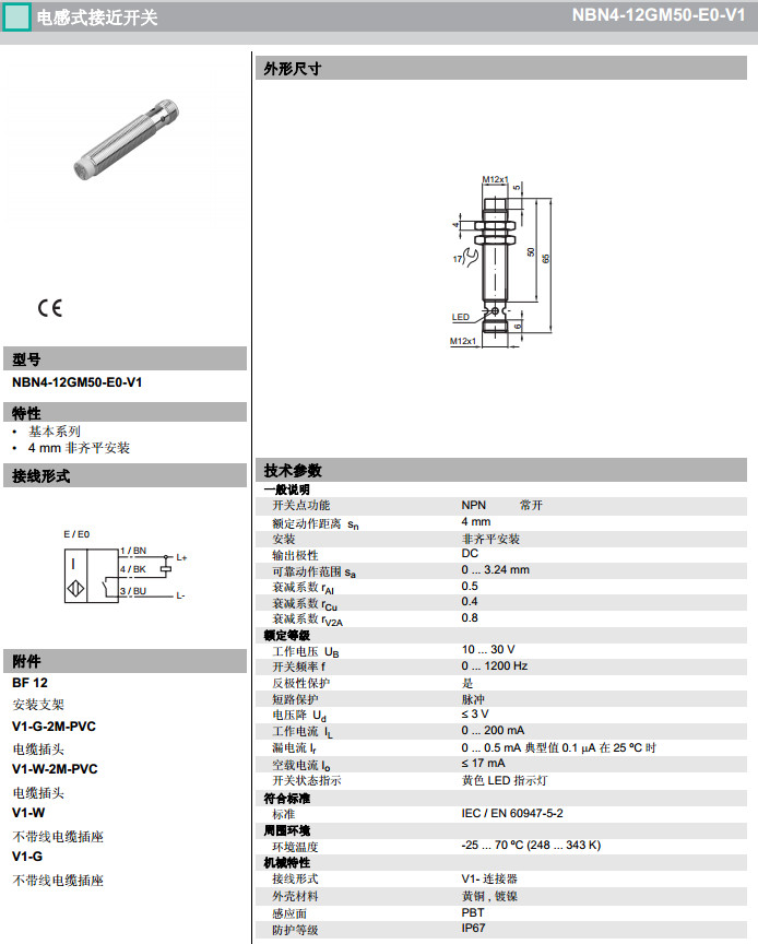 NBN4-12GM50-E0-V1,NBN4-12GM50-E2-V1電感式接近開關