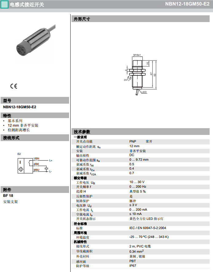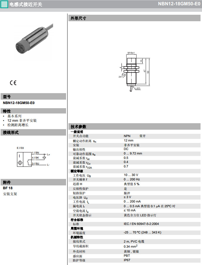 NBN12-18GM50-E0,NBN12-18GM50-E2,電感式接近開關(guān)
