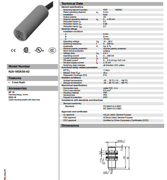 NJ5-18GK50-A2,電感式接近開關(guān)