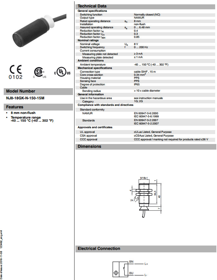 NJ8-18GK-N-150-15M電感式接近開(kāi)關(guān)