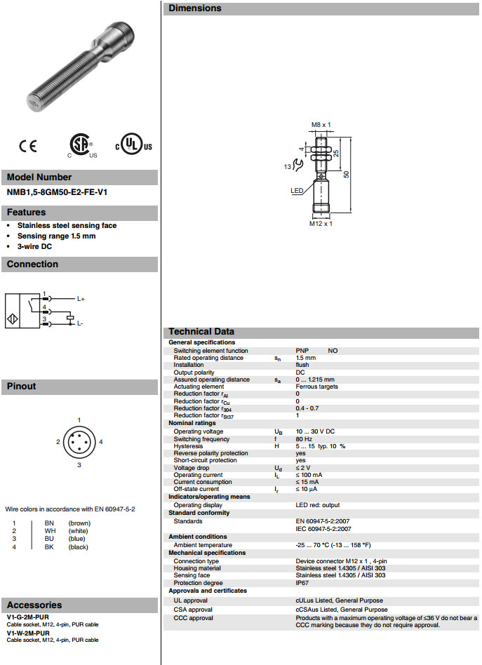 NMB1,5-8GM50-E2-FE-V1電感式接近開關(guān)