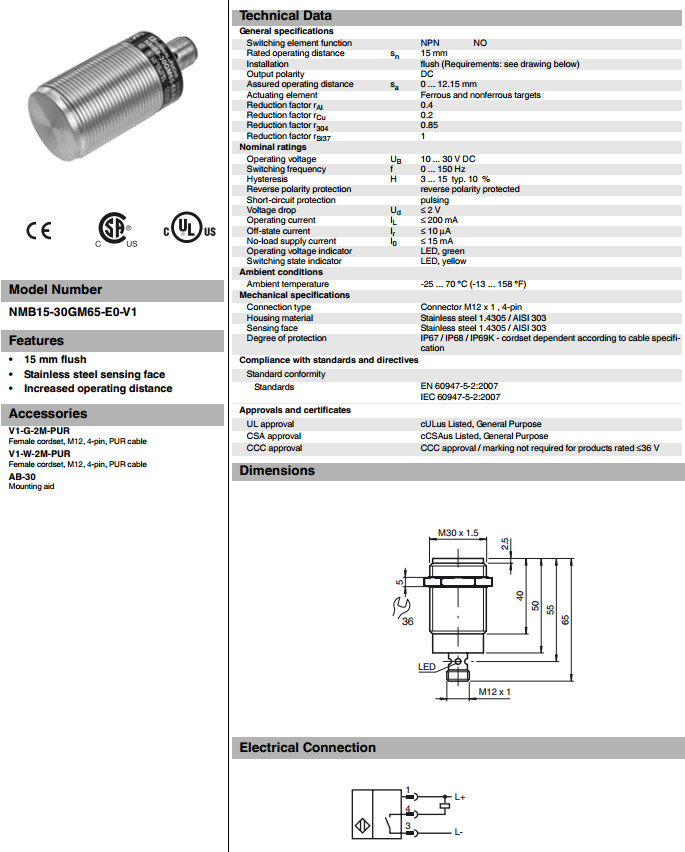 NMB15-30GM65-E0-V1電感式接近開(kāi)關(guān)