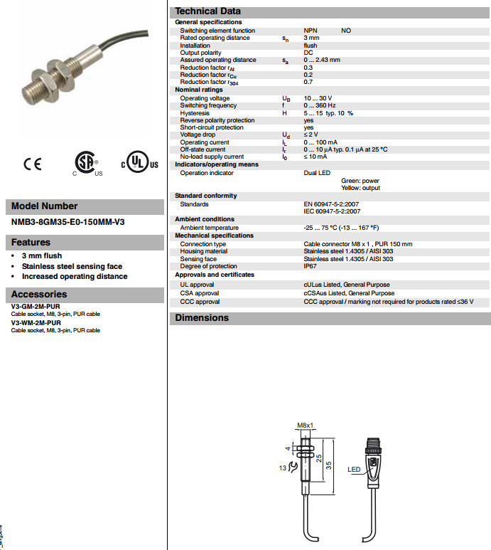 NMB3-8GM35-E0-150MM-V3電感式接近開(kāi)關(guān)
