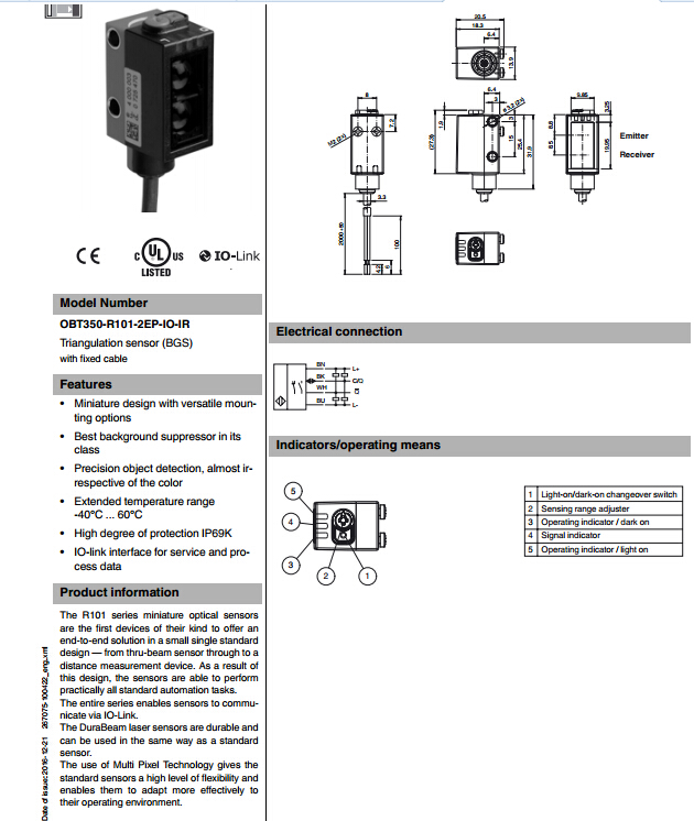 OBT350-R101-2EP-IO-IR,漫反射型傳感器