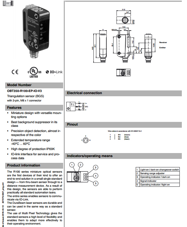 OBT350-R100-EP-IO-V3,漫反射型傳感器