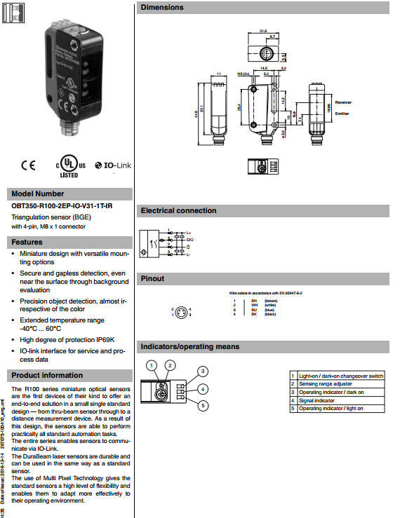 OBT350-R100-2EP-IO-V31-1T-IR,漫反射型傳感器