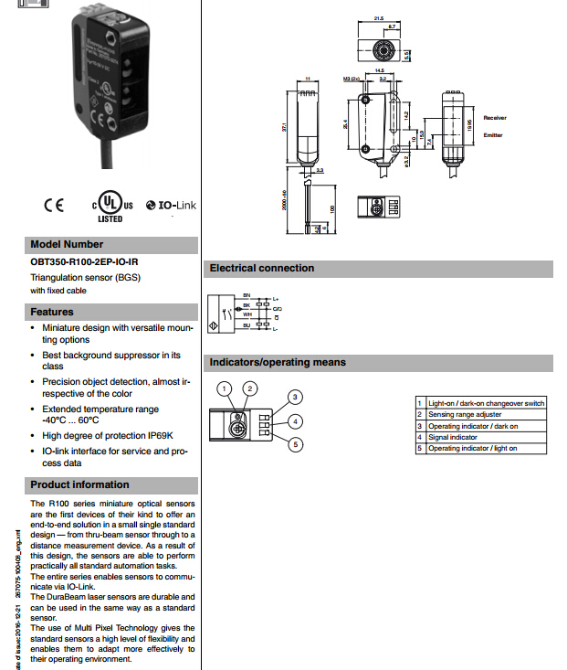 OBT350-R100-2EP-IO-IR,漫反射型傳感器