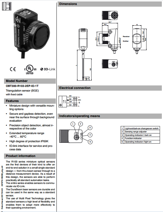OBT300-R103-2EP-IO-1T,漫反射型傳感器