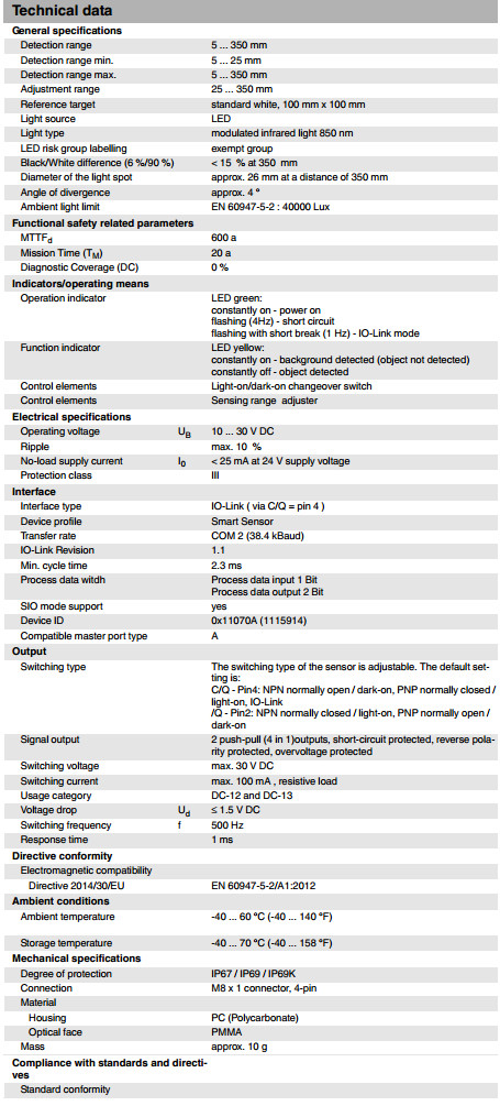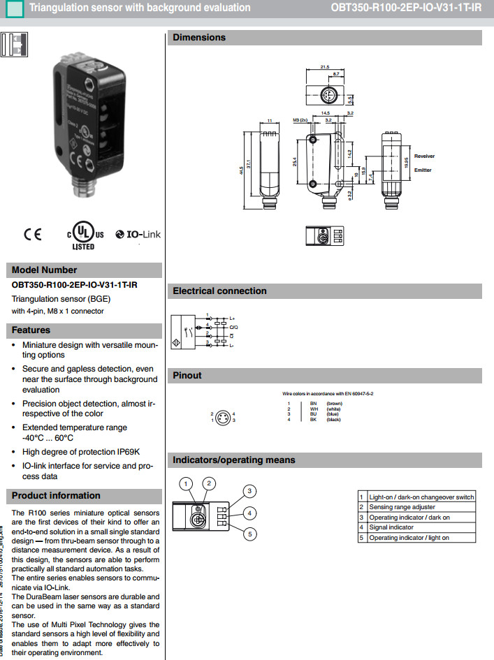 OBT350-R100-2EP-IO-V31-1T-IR漫反射型傳感器