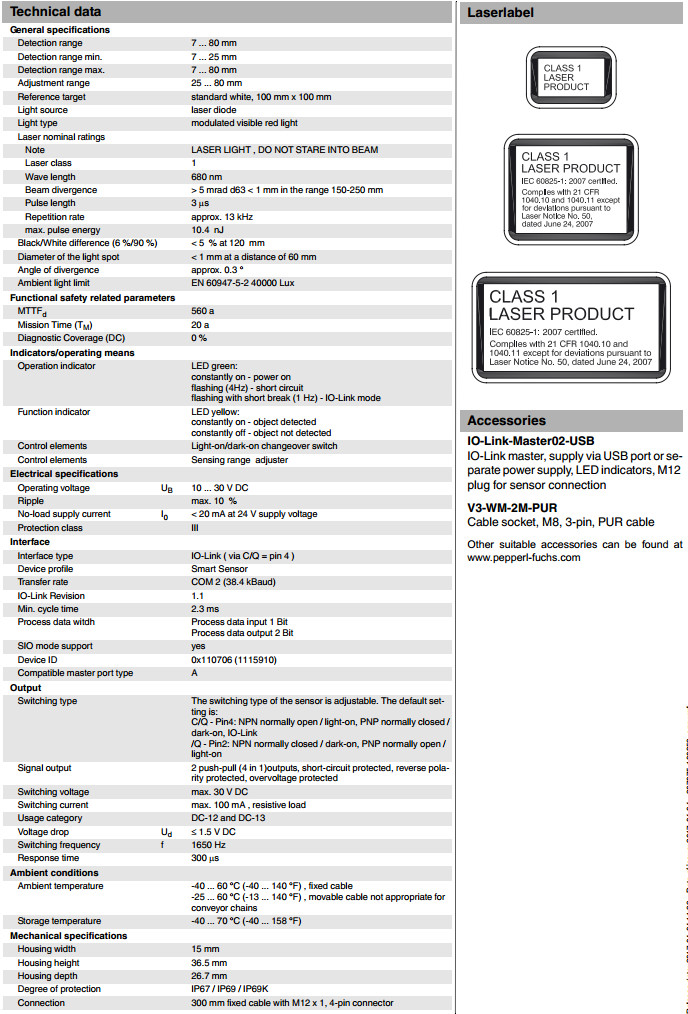 OBT80-R103-2EP-IO-0,3M-V1-1T-L漫反射型傳感器