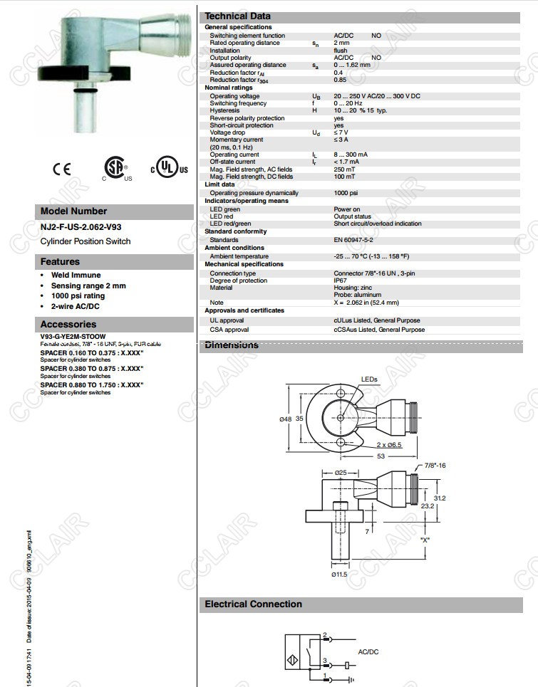 NJ2-F-US-1.025-V93,NJ2-F-US-1.250-V93,NJ2-F-US-2.062-V93,電感式接近開關(guān)