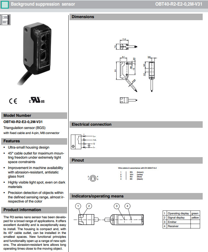 OBT40-R2-E2-0,2M-V31漫反射型傳感器