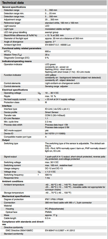 OBT350-R101-EP-IO-0,3M-V3,OBT350-R101-EP-IO-0,3M-V3-1T漫反射型傳感器