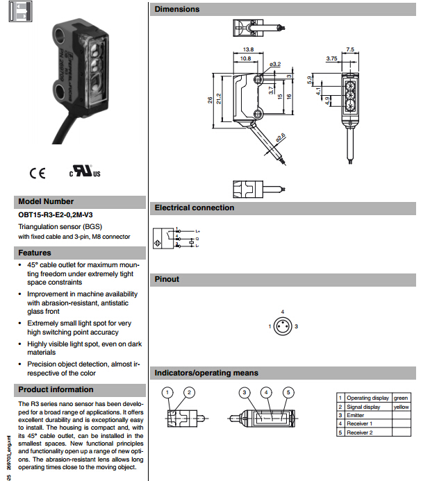 OBT15-R3-E2-0,2M-V3,漫反射型傳感器