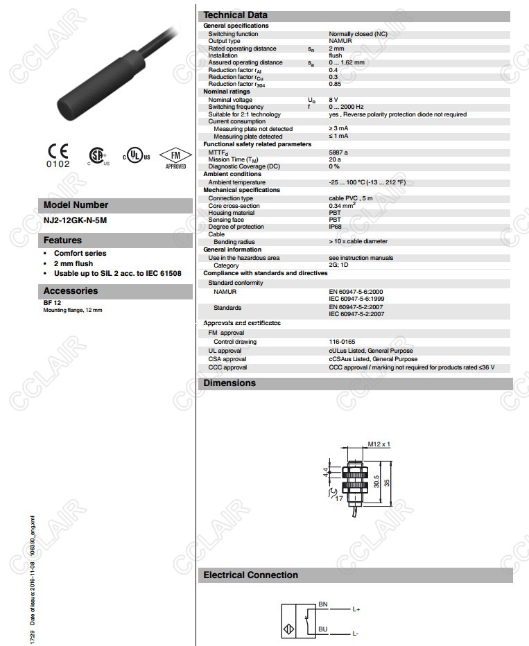 NJ2-12GK-N-5M,電感式接近開關(guān)