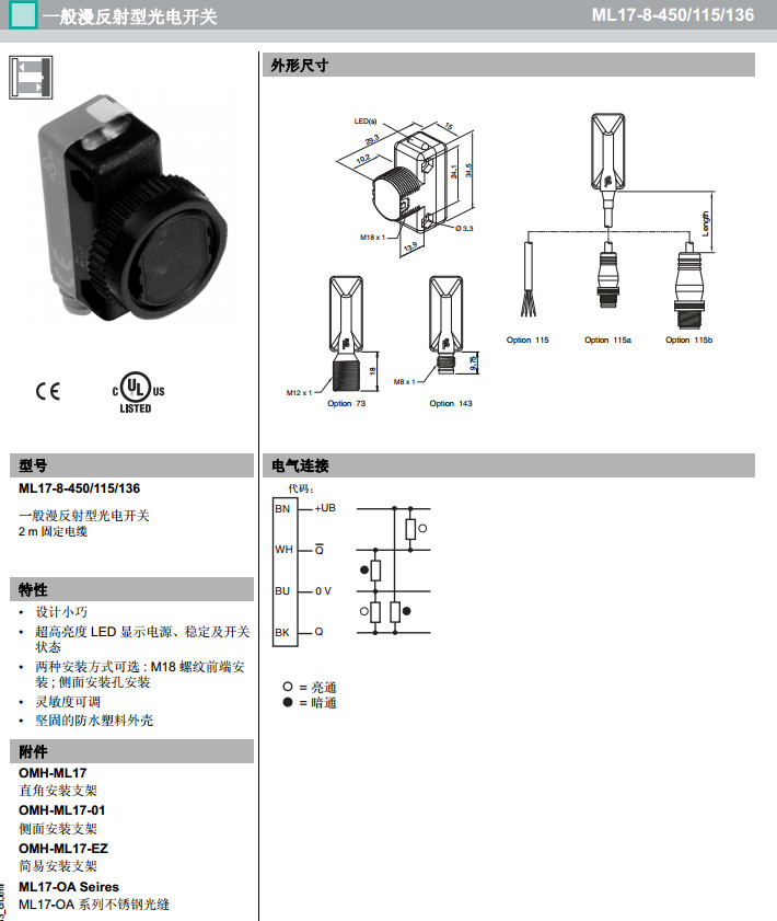 ML17-8-450/115/136漫反射型傳感器