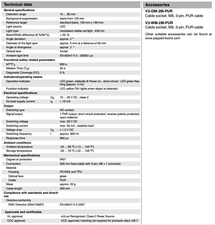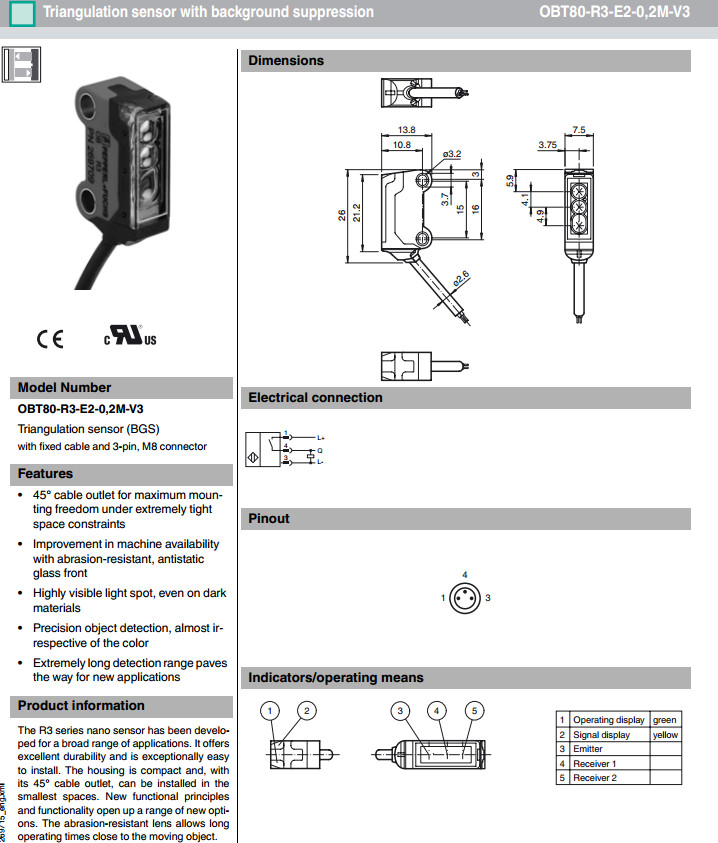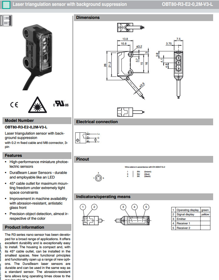 OBT80-R3-E2-0,2M-V3,OBT80-R3-E2-0,2M-V3-L漫反射型傳感器