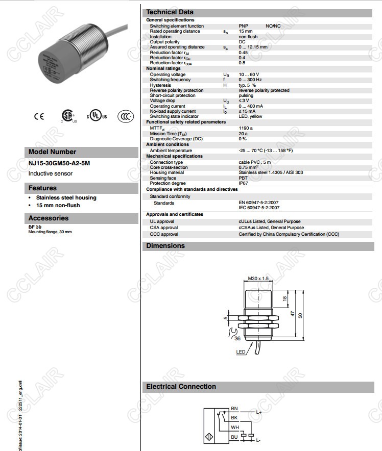 NJ15-30GM50-A2-5M,電感式接近開(kāi)關(guān)