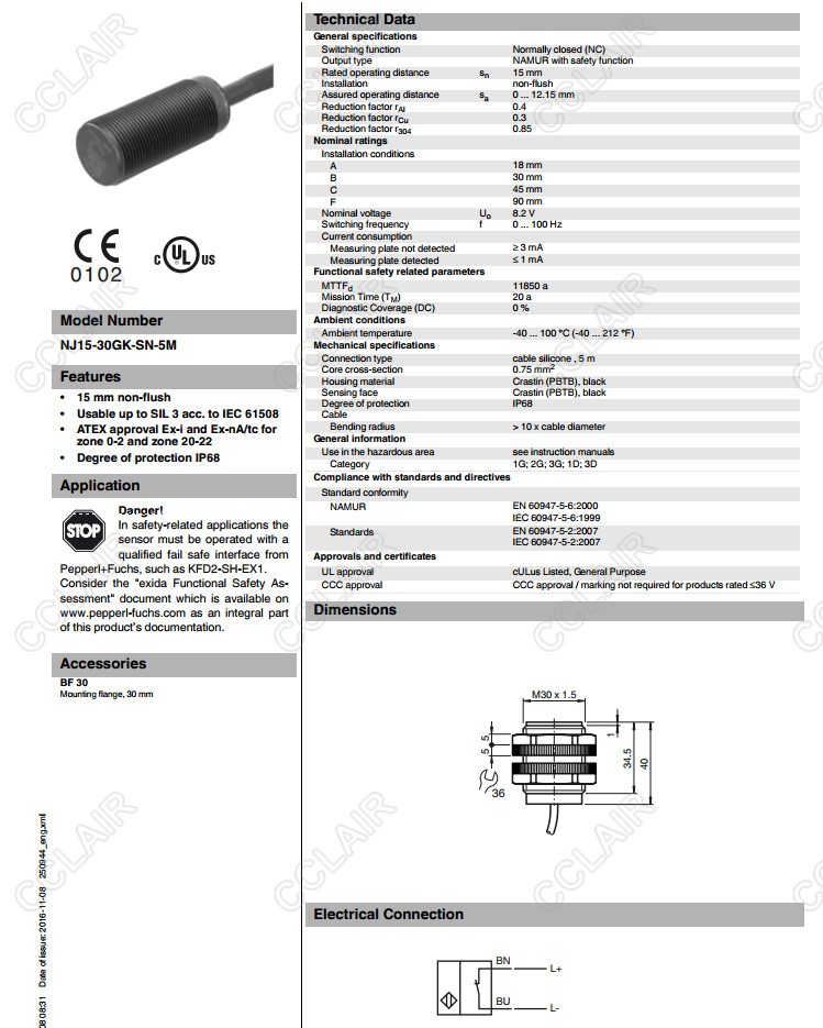 NJ15-30GK-SN-5M,電感式接近開關(guān)