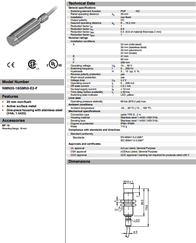 NMN20-18GM50-E2-F電感式接近開關(guān)