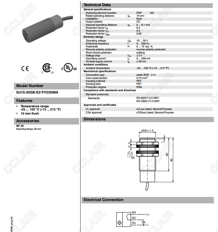 NJ10-30GK-E2-T-Y230968,NJ10-30GK-E2-Y11312,電感式接近開(kāi)關(guān)