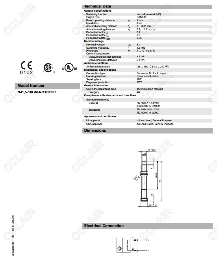 NJ1,5-10GM-N-Y183937,電感式接近開關