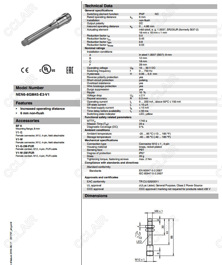 NEN6-8GM45-E3-V1,電感式接近開關(guān)
