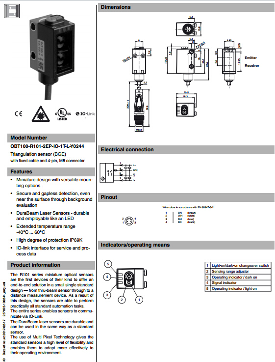 OBT100-R101-2EP-IO-1T-L-Y0244,漫反射型傳感器