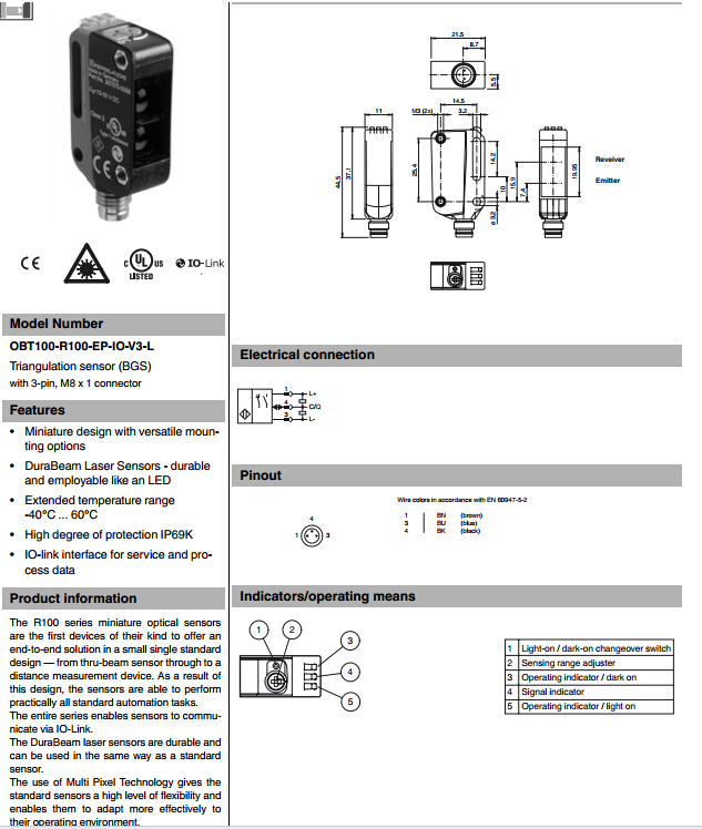 OBT100-R100-EP-IO-V3-L,漫反射型傳感器