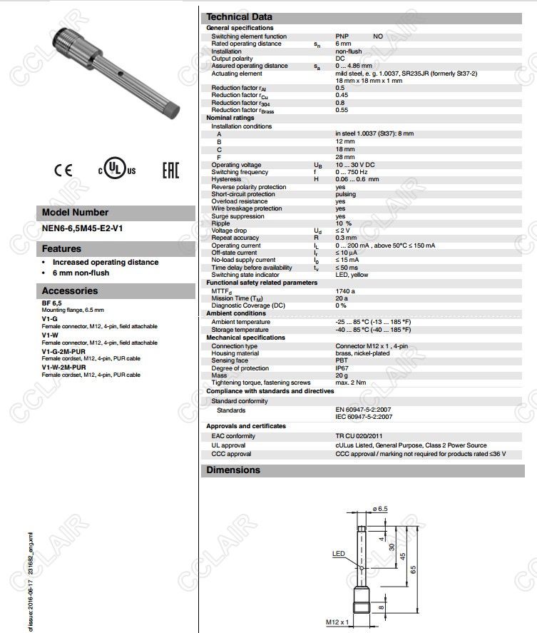 NEN6-6,5M45-E2-V1,電感式接近開關