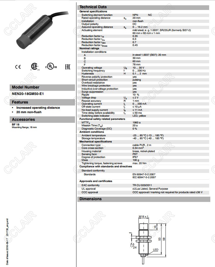 NEN20-18GM50-E1,電感式接近開關(guān)