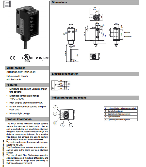 OBD1100-R101-2EP-IO-IR,漫反射型傳感器