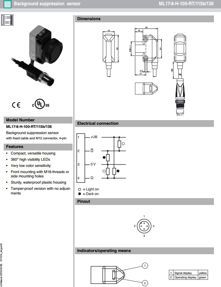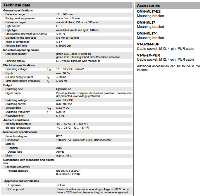 ML17-8-H-100-RT/115b/136漫反射型傳感器