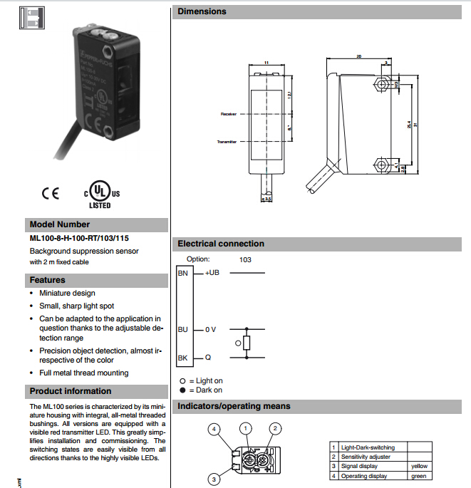 ML100-8-H-100-RT/103/115,漫反射型傳感器